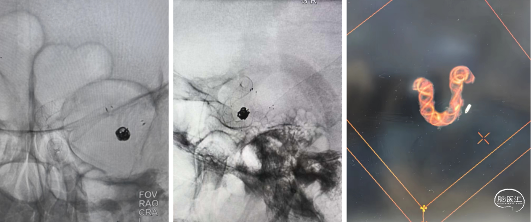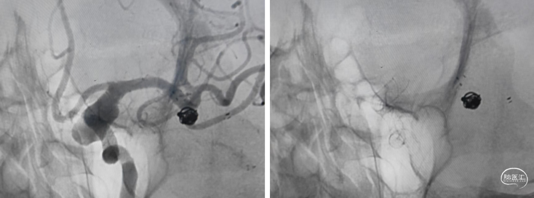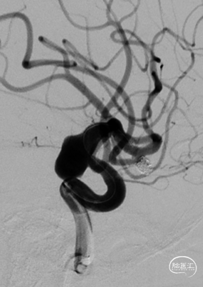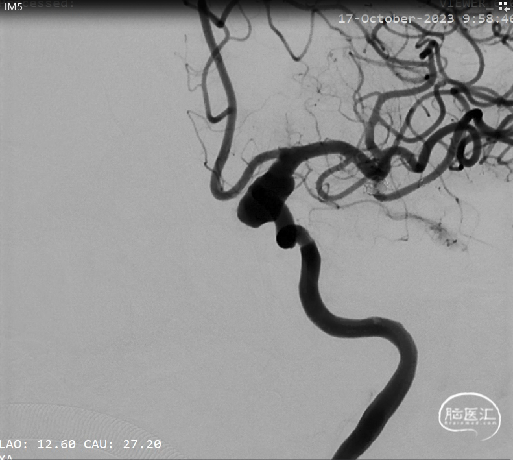 左侧颈内动脉末端夹层动脉瘤:Nuva®血流导向密网支架植入。