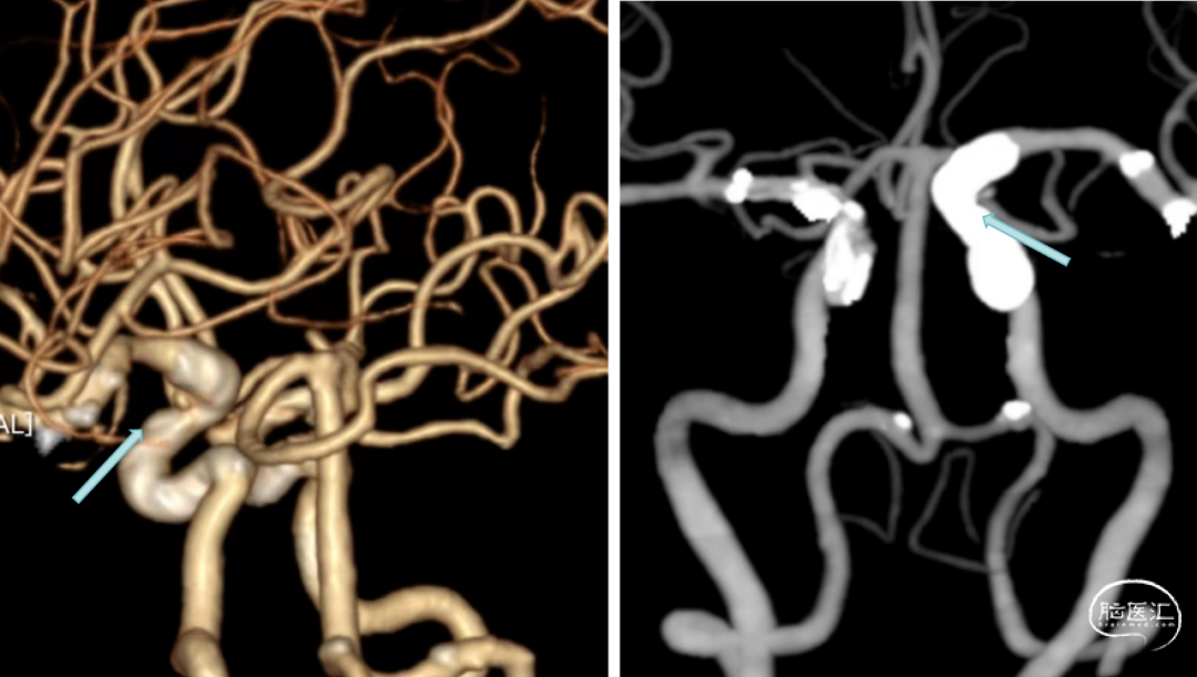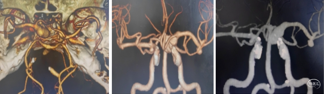 现病史:入院前3月行头部MRA、CTA提示颅内多发动脉瘤,现为其进一步治疗前来我院。门诊以“脑动脉瘤”收入神经外科,病程中无意识不清,无二便障碍,无头痛,无四肢活动异常,无视力视野改变。