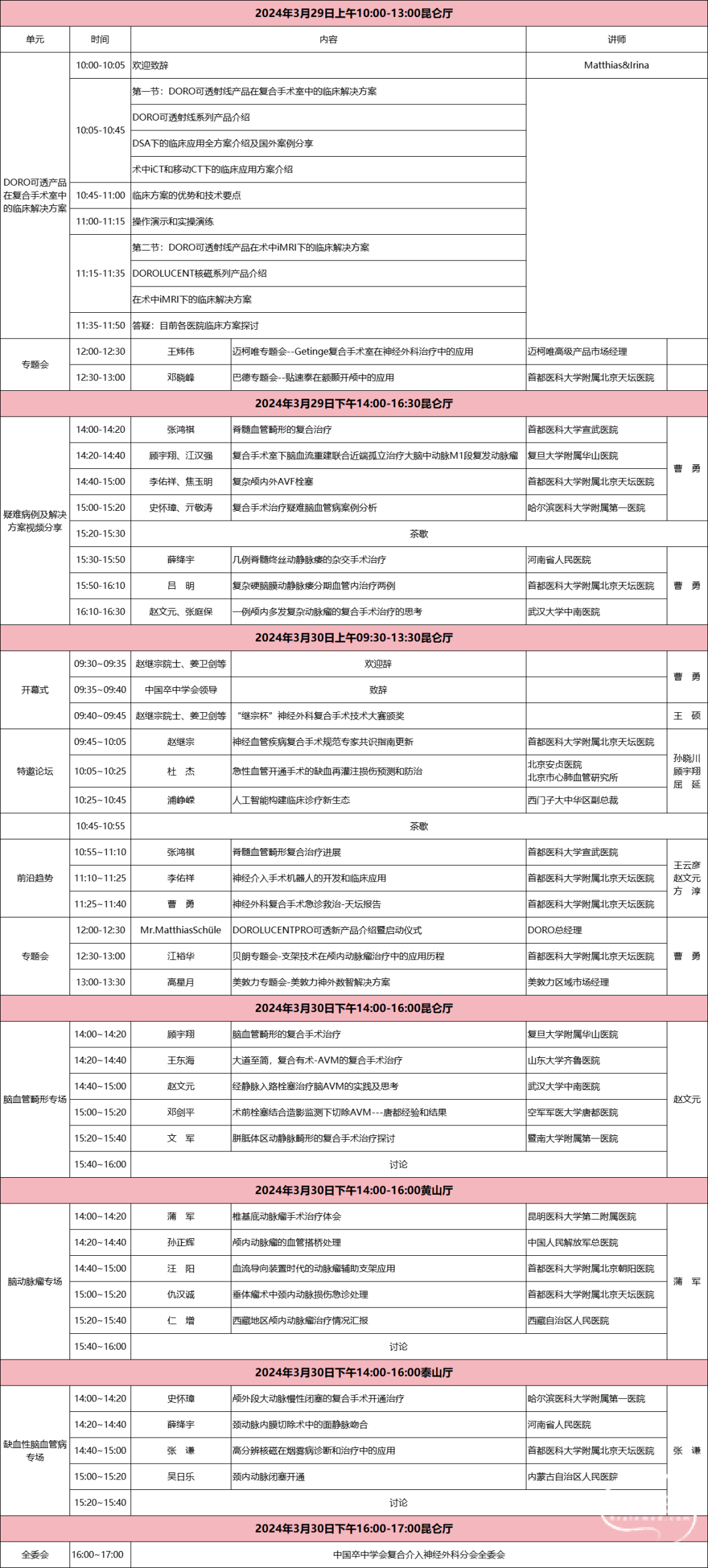 会议期间将召开首届“继宗杯”神经外科复合手术技术大赛和中国卒中学会复合介入神经外科分会第二届委员会全体委员会议。