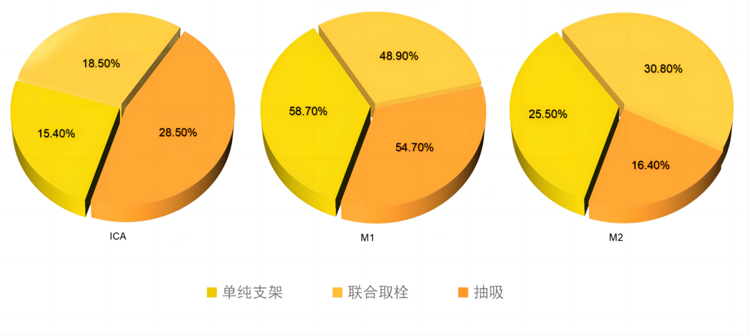 关键要点:与单纯抽吸相比,取栓支架结合BGC及联合取栓技术可带来更高的一次开通率。三种技术在术后90天mRS 0-2和安全终点差异无统计学意义。