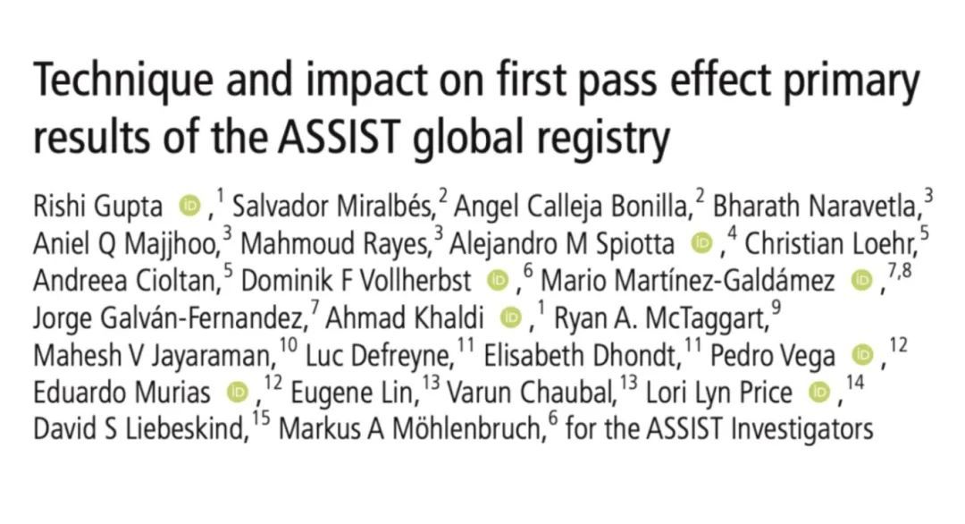 Gupta R, Miralbés S, Calleja Bonilla A, et al. Technique and impact on first pass effect primary results of the ASSIST global registry. J Neurointerv Surg. Published online January 9, 2024. doi:10.1136/jnis-2023-021126