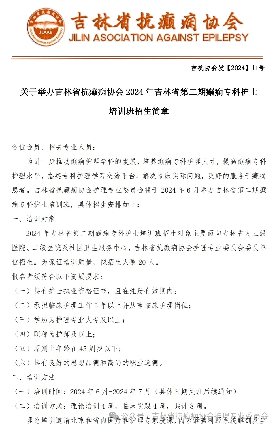 为进一步推动癫痫专科护理的发展,培养癫痫专科护理人才,提高癫痫专科护理水平,搭建专科护理学习交流平台,解决临床实际问题,更好地服务于癫痫患者。吉林省抗癫痫协会护理专业委员会将于2024年6月举办吉林省第二期癫痫专科护士培训班,具体招生详见原文。