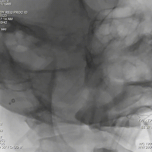 造影确认支架打开贴壁良好。