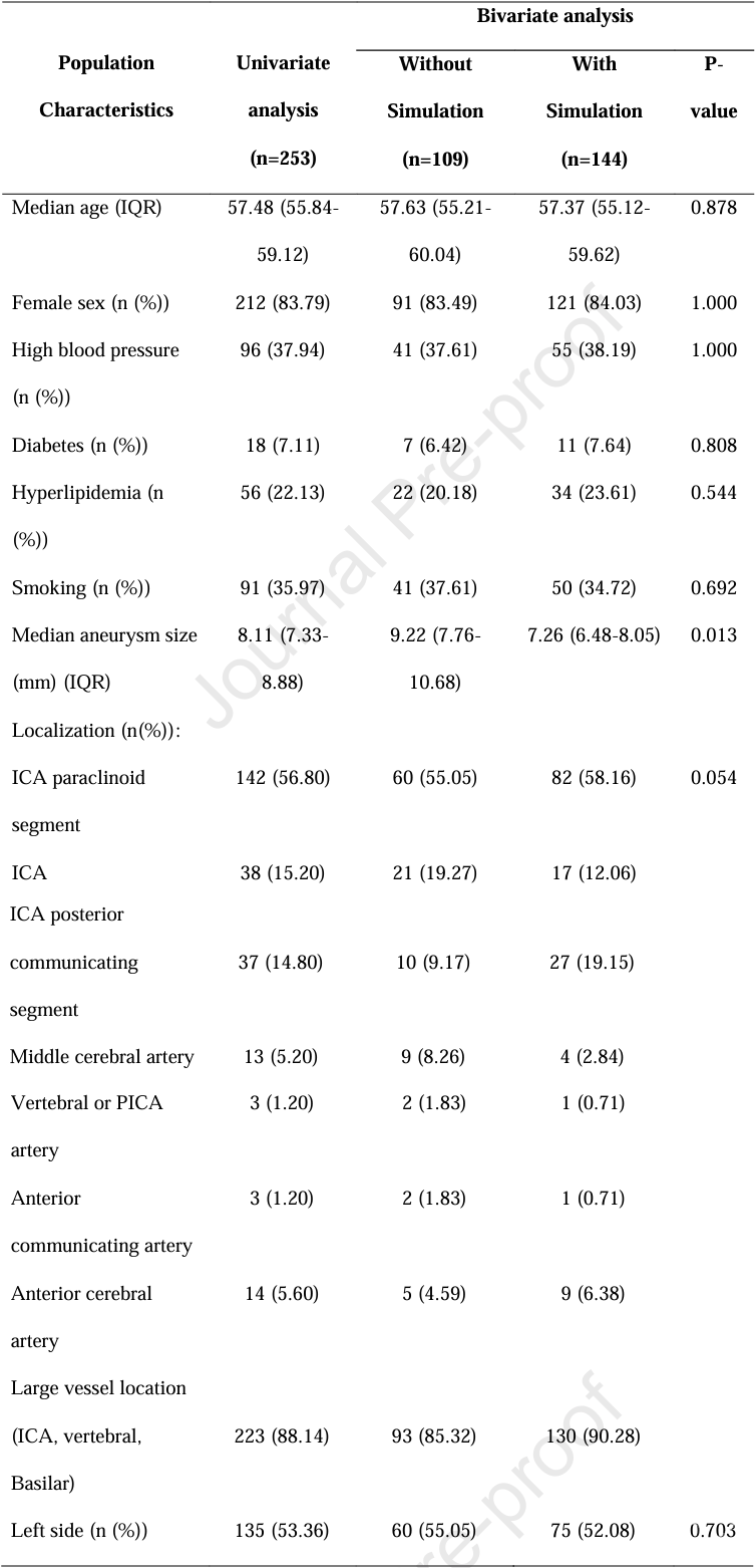 表3. 使用和未使用Sim&Size™模拟进行Pipeline Embolization支架治疗的患者并发症。