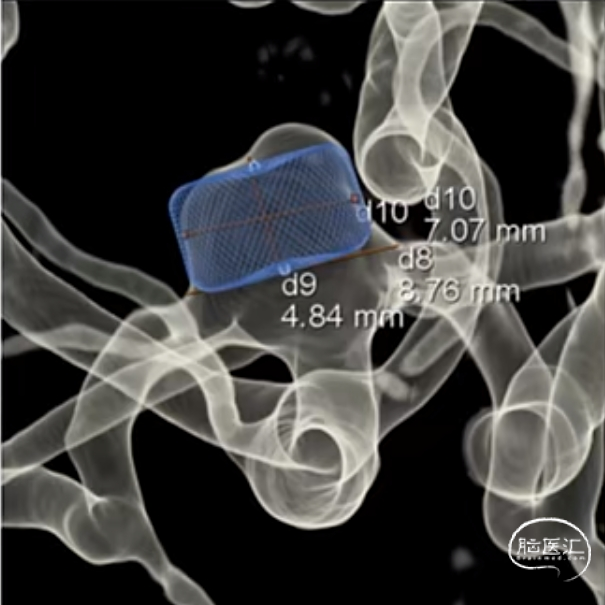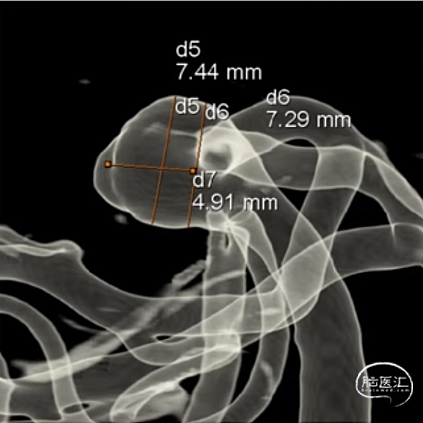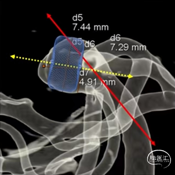 经测量可得动脉瘤宽度平均值为7.0mm,动脉瘤高度为5.18mm,选用WEB™ SL 8*4。