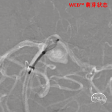 释放WEB™:缓慢推出WEB™从种子至萌芽状态,继续向瘤腔内远端缓慢推送WEB™至萌芽至开花间状态;将WEB™和VIA™送至瘤顶,固定WEB™推送杆回撤VIA™,WEB™完全释放。