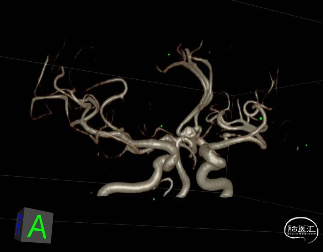 现病史:患者入院前7天于家中无明显诱因出现头晕,后自行好转,无恶心、呕吐,无四肢抽搐,无大小便失禁,患者当时未予重视,未至医疗机构诊治。3天前患者头晕无明显好转,伴间断性视觉模糊,遂就诊于当地医院。完善头颅CTA提示:基底段膨胀,为进一步治疗。遂以“动脉瘤”收入我科。