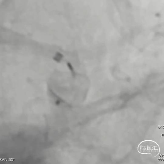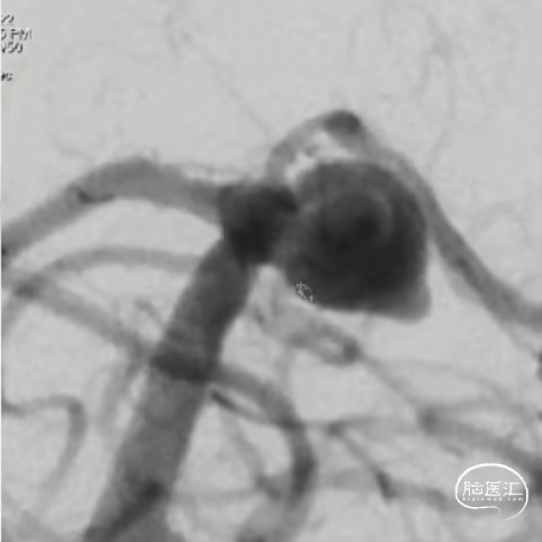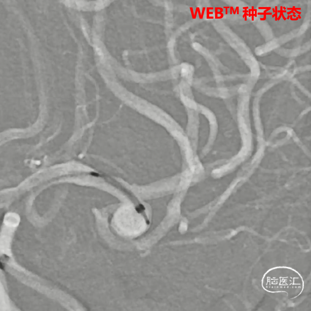 术后6个月随访造影,WEB™充分栓塞,瘤颈残留,WEB™被压缩。