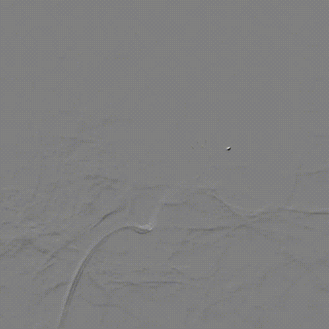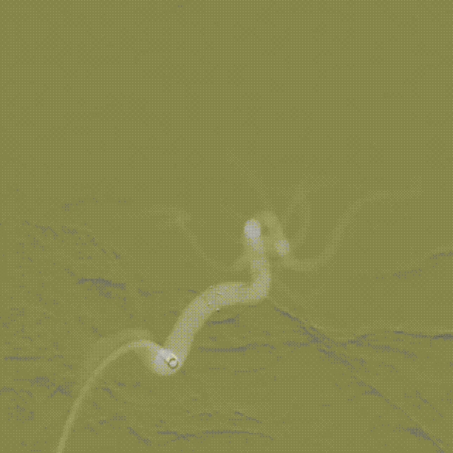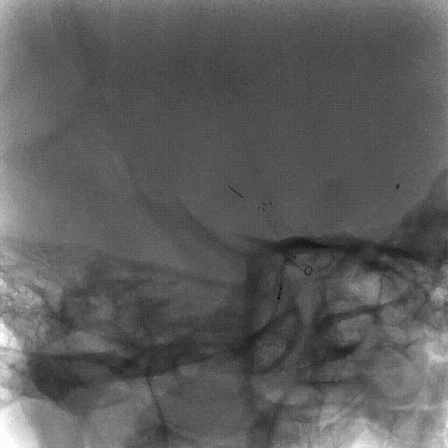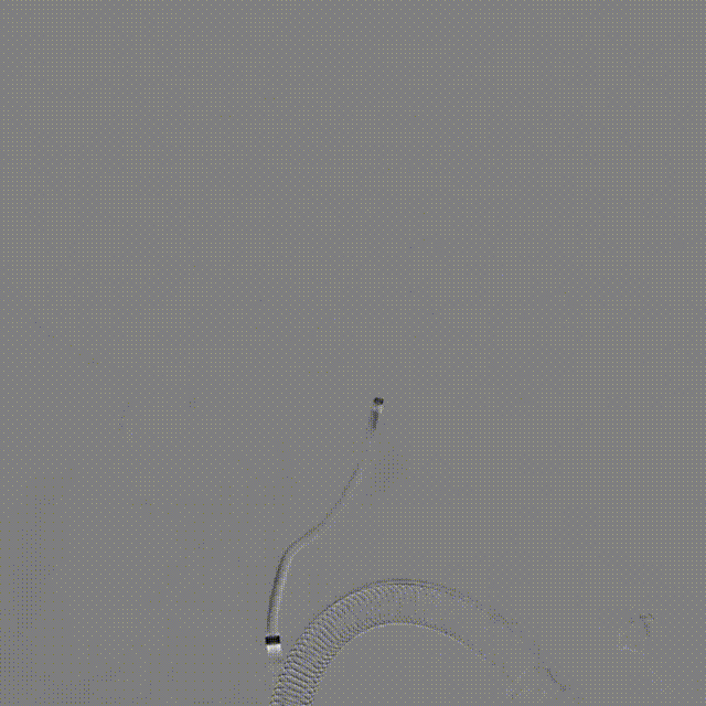 Headway™ 27 156cm微导管内输送FRED 4017血流导向密网支架,系统远端精准定位于预计着陆区远端(后交通动脉壶腹前端),确保扩口无效段跨过后交通动脉壶腹段。回撤微导管原位释放支架,释放过程支架头端无短缩,支架覆盖过动脉瘤颈后,手推造影确认前半段支架打开及贴壁情况良好。