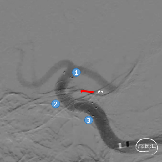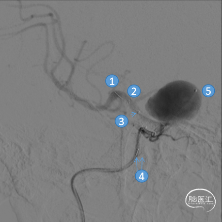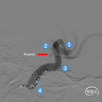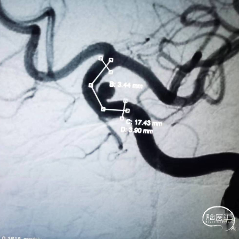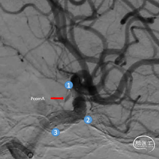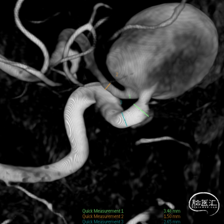 1.颈内动脉海绵窦段动脉瘤及后交通动脉起始端壶腹膨大明显,但后交通动脉功能重要,尽量不覆盖后交通动脉。