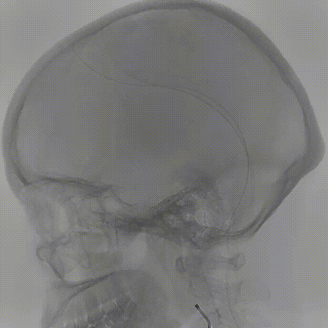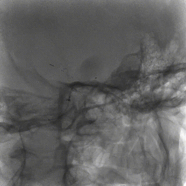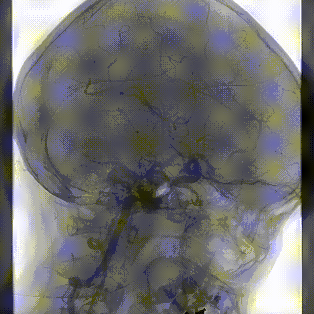 术中DSA造影:右侧颈总动脉正、侧位造影。