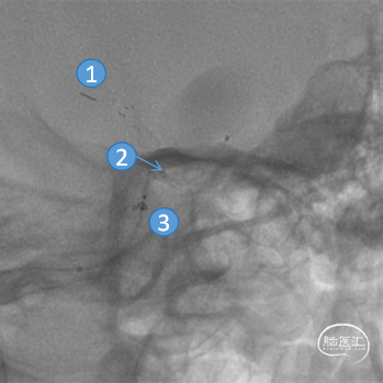 FRED®血流导向密网支架释放至覆盖动脉瘤颈后,通过微导管头端标记点与支架近端标记点预估支架释放的近端着陆点(约为两点之间的40%-60%)。确定近端着陆点处于血管平直区后,平衡释放支架末端,保证支架近端贴壁良好。