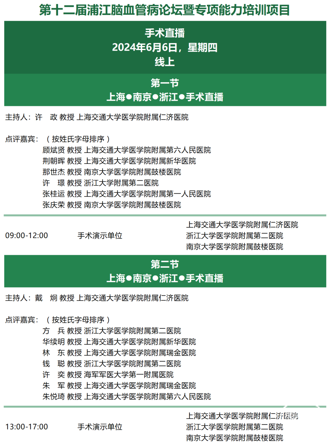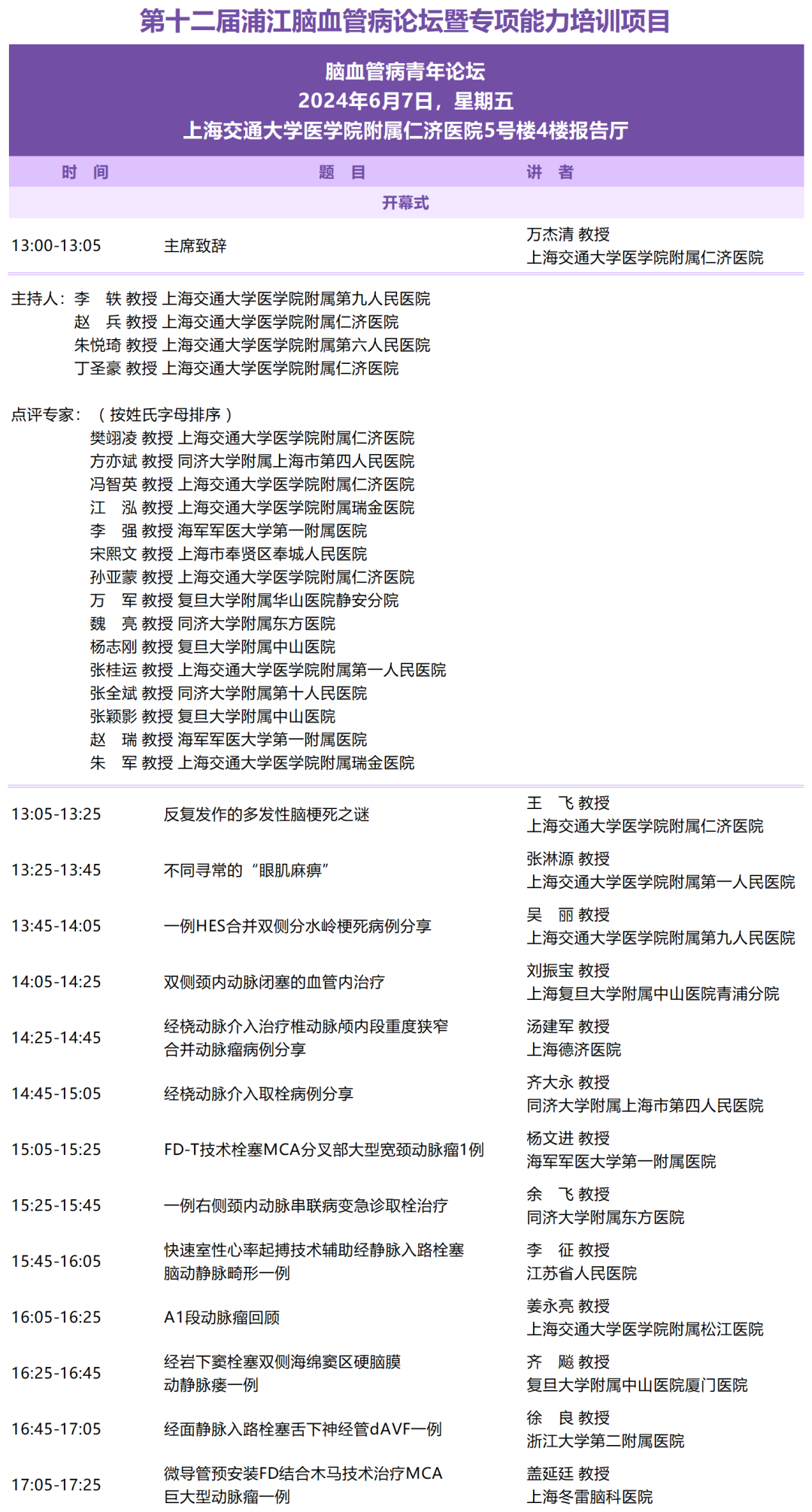 浦江之上,竞逐潮头。上海交通大学医学院附属仁济医院“第十二届浦江脑血管病论坛(PCCVD)”将于2024年6月6日-9日在上海隆重召开,我们诚挚邀请您拨冗参会!