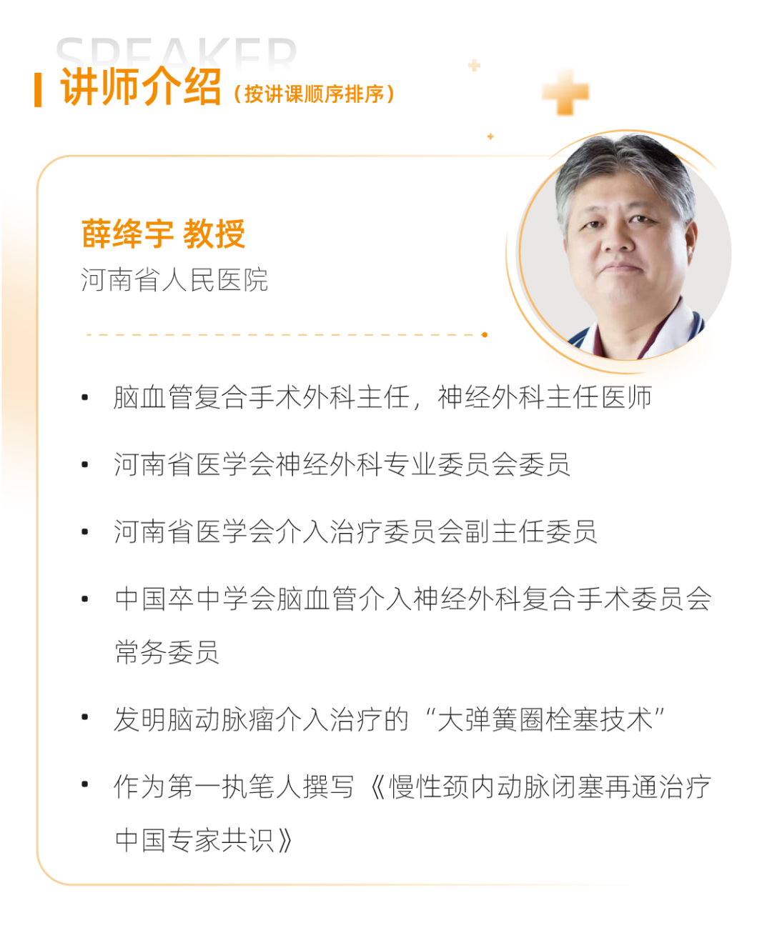 神经外科复合手术是将血管内介入技术和血管外开放手术有机融合的临床新兴治疗手段。新技术的发展不仅拓展了手术所能治疗的疾病谱,提高了手术的安全性,同时也改善了脑血管疾病患者的预后。本次课程特邀国内众多权威专家亲临现场,结合现场手术演示、丰富案例分享,聚焦复合手术等创新技术,多维度打造丰富学术内容,旨在帮助更多的神经外科年轻医生更好更快进步,并应用到临床服务更广泛的病患。