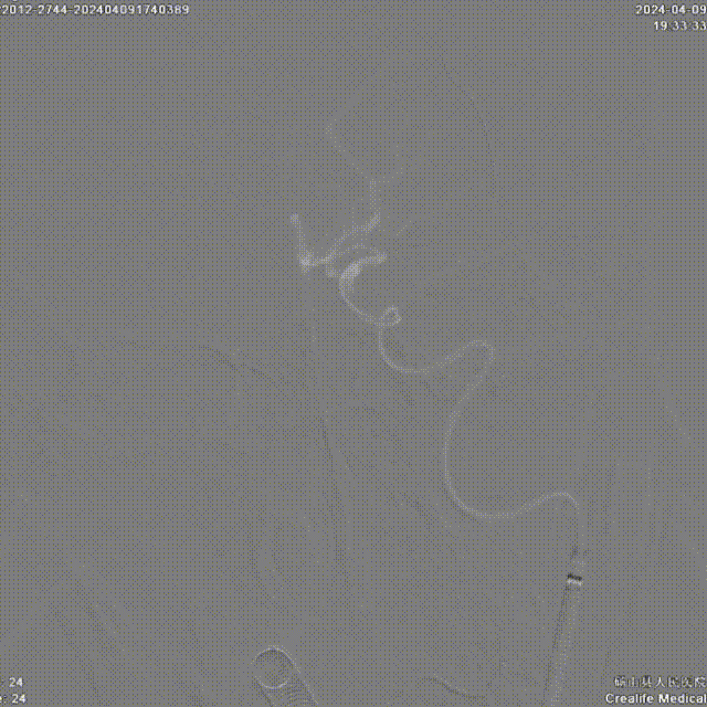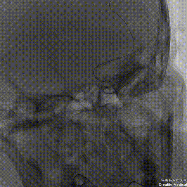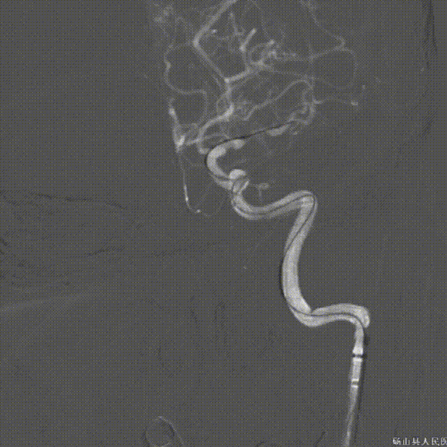 微导丝带领微导管通过左侧大脑中动脉狭窄段。