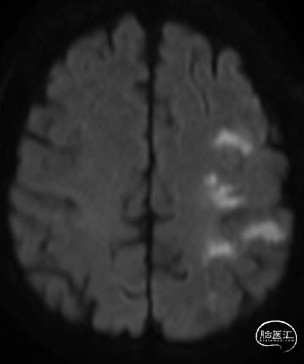 3月15日再次出现右侧肢体无力,复查MRI提示:左侧基底节区/侧脑室旁及额顶枕叶急性期脑梗死;CTA提示:左侧大脑中动脉M1段起始部重度狭窄。给予抗血小板聚集/降脂/改善微循环及康复等治疗。