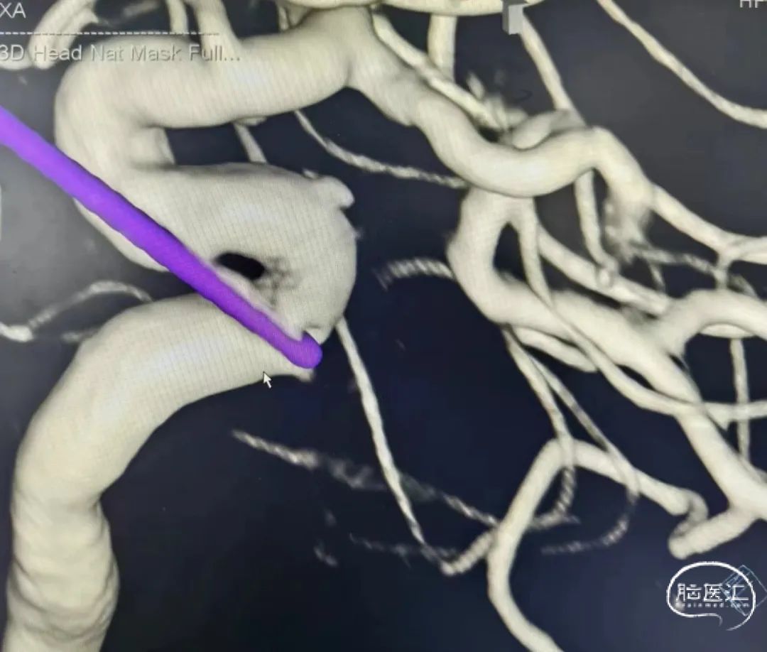 若不去除金属棒,伤者随时有刺破颈内动脉导致大出血可能,但若手术拔出,风险更大。吴教授提出:完善脑血管造影后,尽可能在神经内镜下进行异物取出手术。
