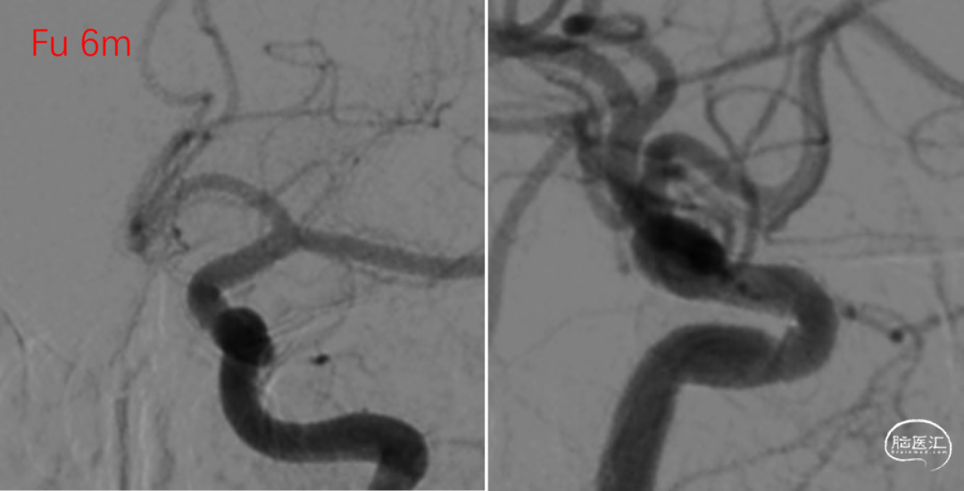 术后6月随访,可见动脉瘤愈合,载瘤动脉通畅(图5)。予以停用氯吡格雷。