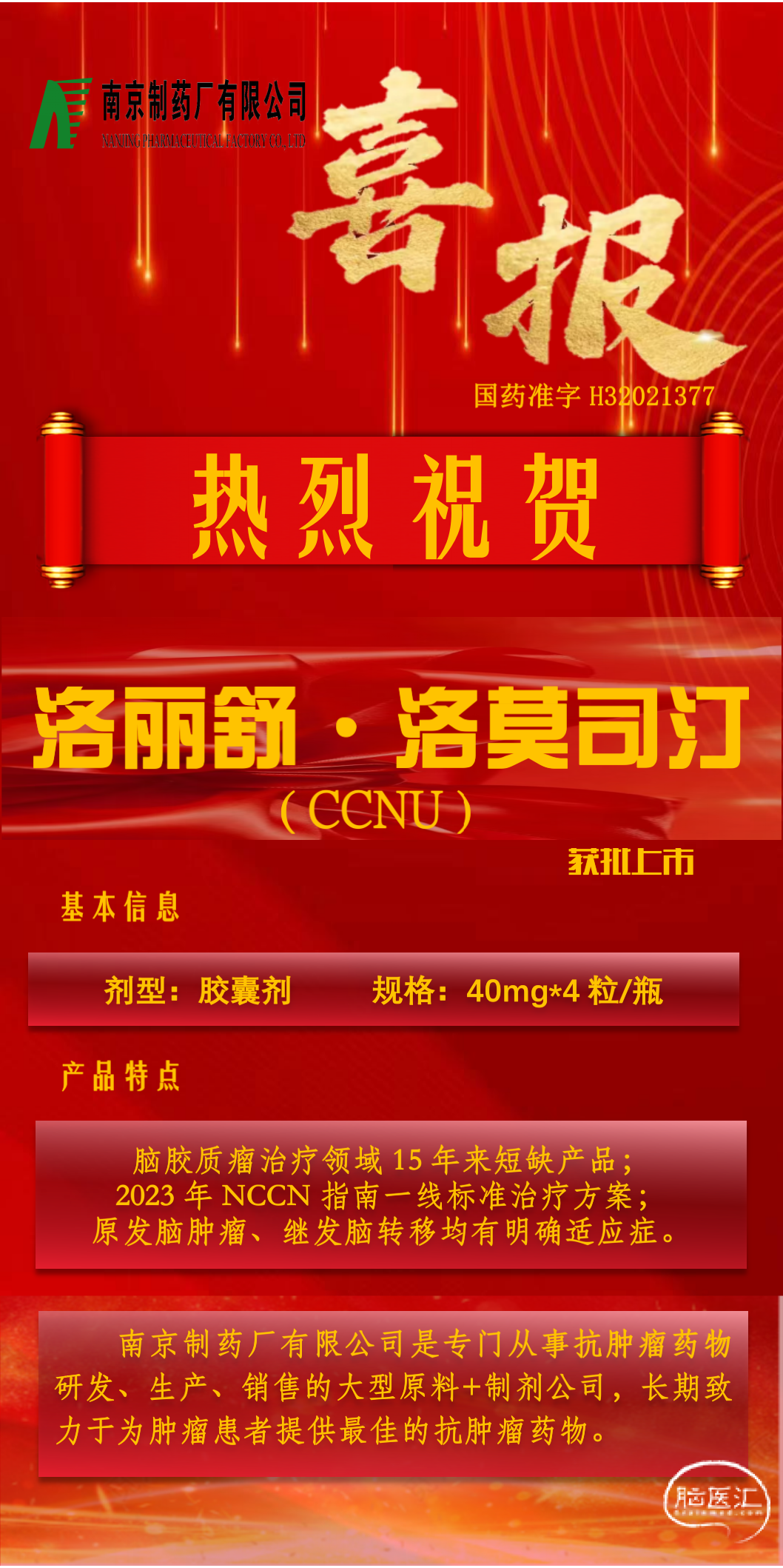 喜报丨祝贺洛丽舒®·洛莫司汀(CCNU)获批上市!