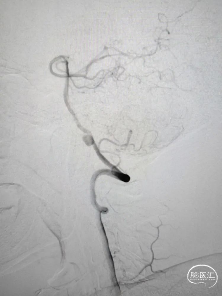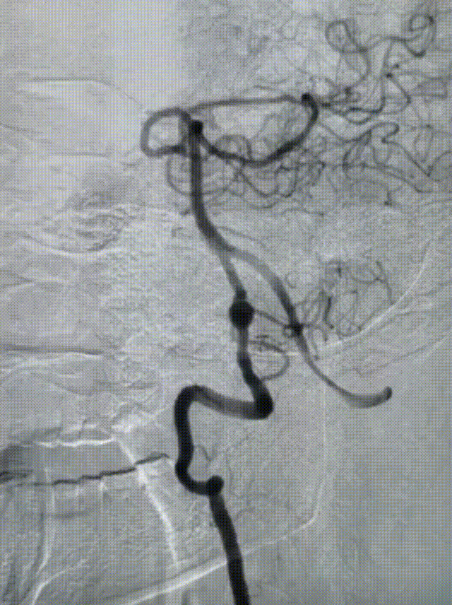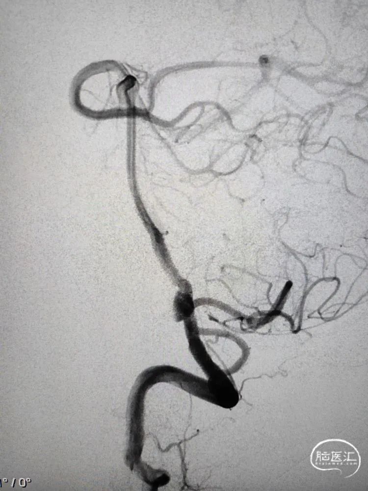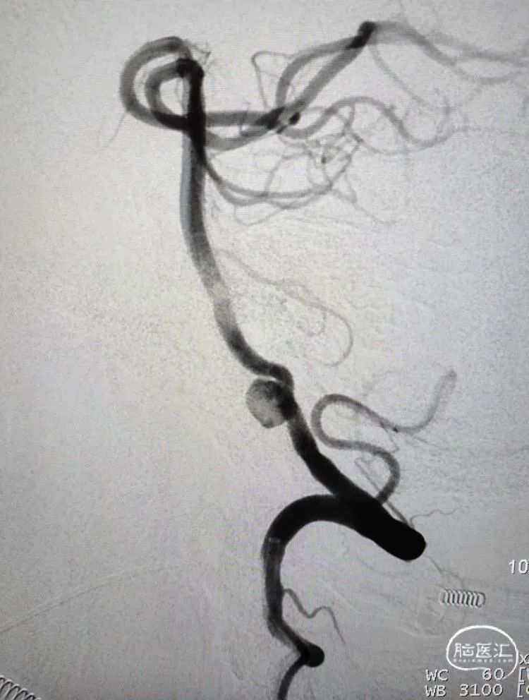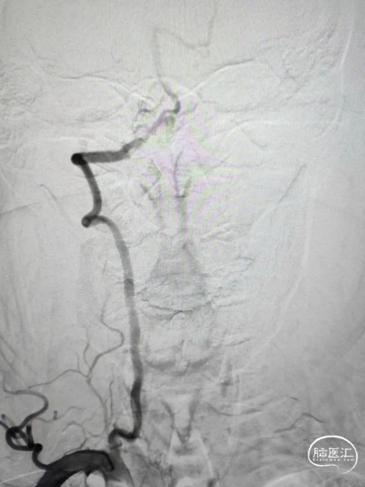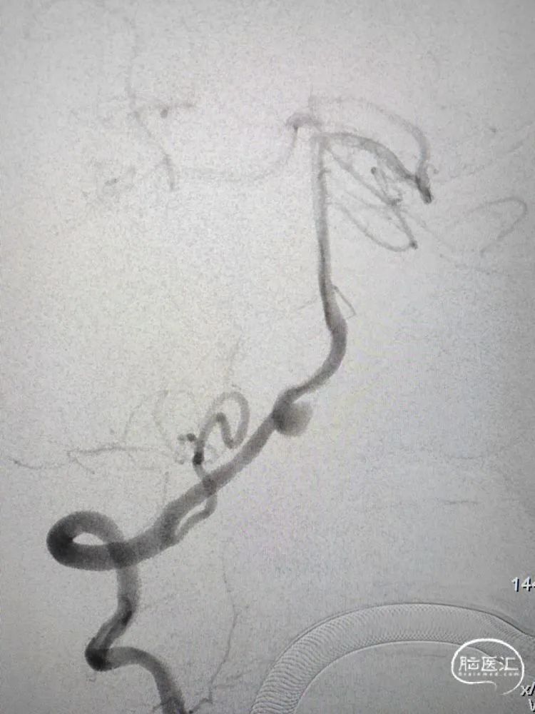 术前影像学检查:全脑血管造影检查提示右侧椎动脉V5段(颅内段)夹层动脉瘤。