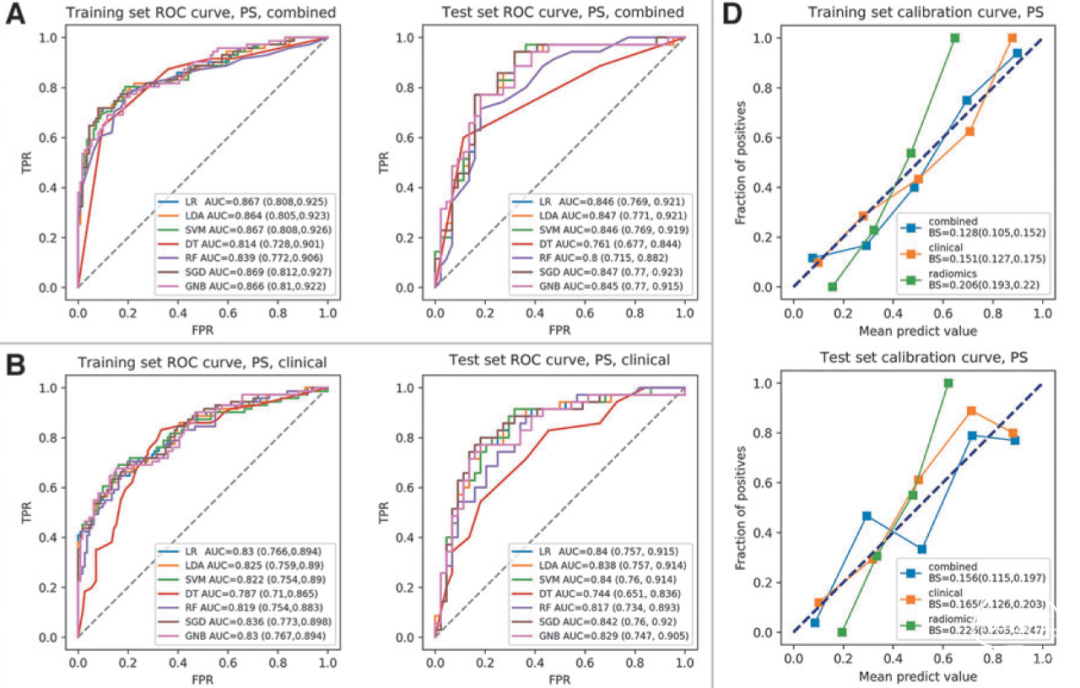 4. 对于患者预后的预测,影像组学特征在传统临床特征的基础上进一步提升模型预测效果的能力较弱
