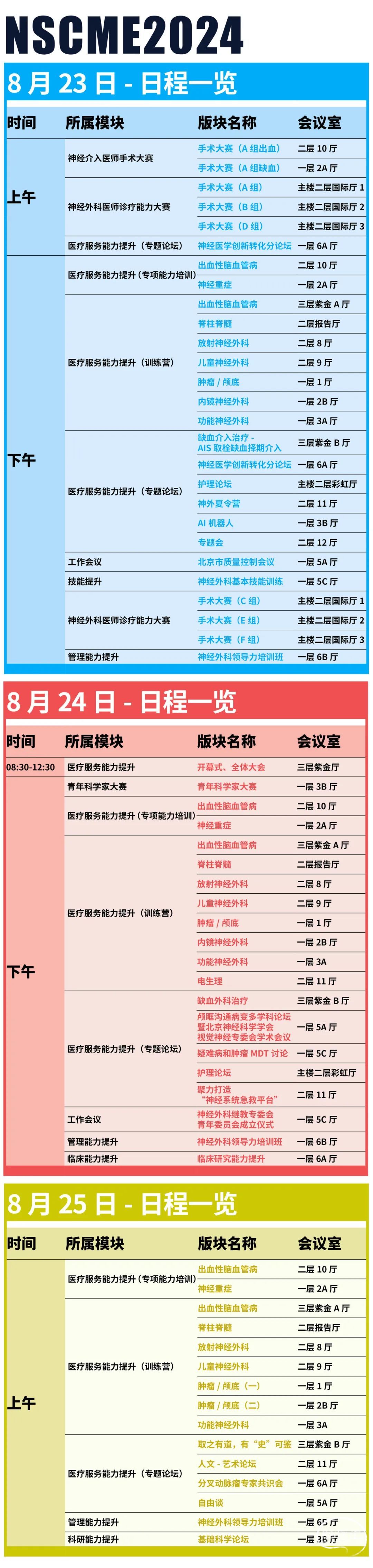 由中国初级卫生保健基金会联合北京慧智精准医学促进中心主办,国家神经疾病医学中心(宣武)、首都医科大学宣武医院承办的第二届全国神经外科继续教育大会暨第二届国家神经疾病医学中心(宣武)国际神经外科论坛(简称第二届NSCME)将于2024年8月23日-25日在北京国际饭店隆重召开。会议特邀国内外众多顶尖专家与学者,以“传承 协作 创新 发展”为主题,从神经介入、神经创伤、神经内镜、神经肿瘤、立体定向及功能神外、脑血管外科、脊柱脊髓神外、颅底外科、神外基础、小儿神外、神经重症、电生理十二个亚专业分别进行讲解,共同探讨神经外科领域的热门问题。