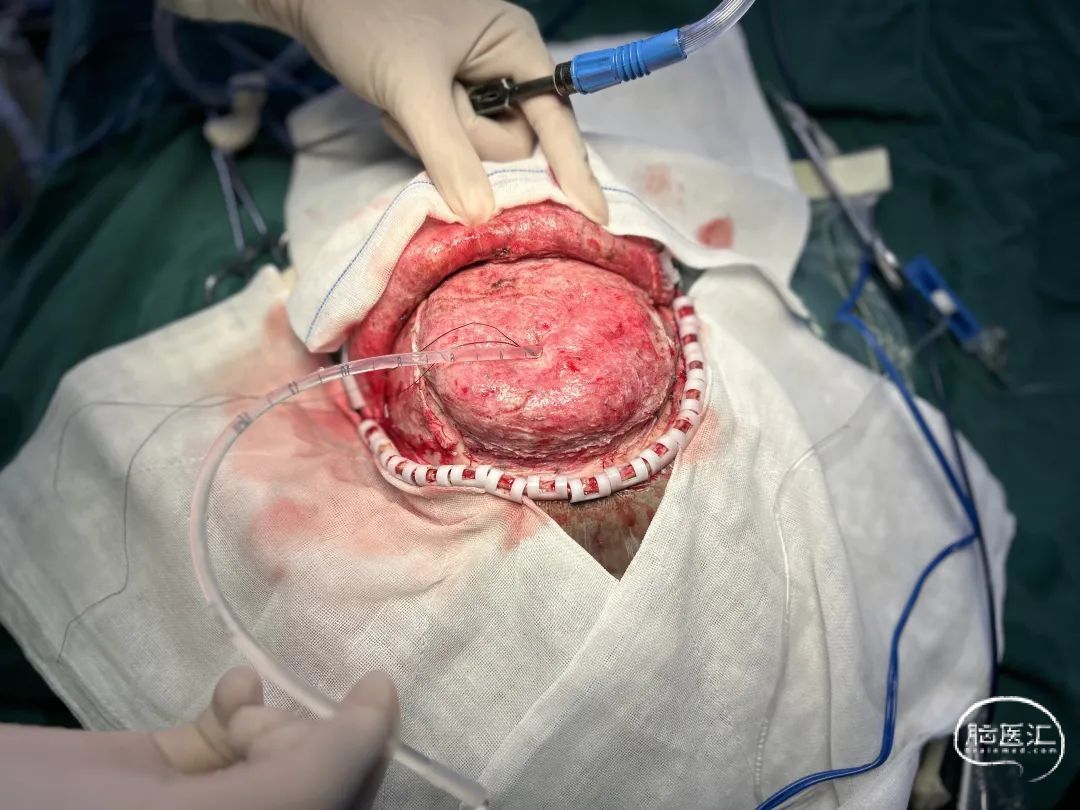 术前抬高背板15°,腰大池释放脑脊液,脑组织仍回落不明显
