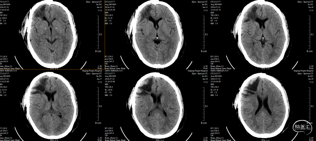 额部脑组织软化、局灶性脑积水,膨出骨窗