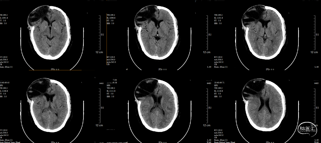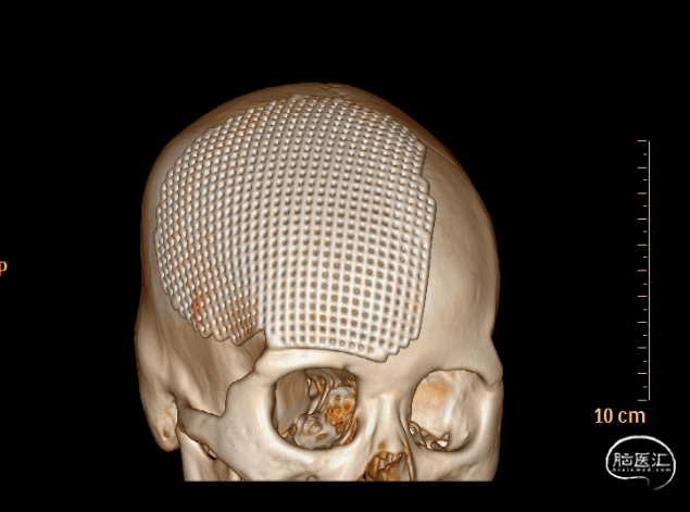 查体:神清,GCS15分,四肢肌力肌张力正常。右额部骨窗处软组织膨隆。