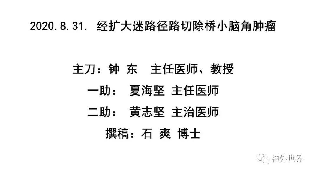 钟议神外 |【病例分享】钟东教授团队:经扩大迷路径路切除桥小脑角肿瘤一例