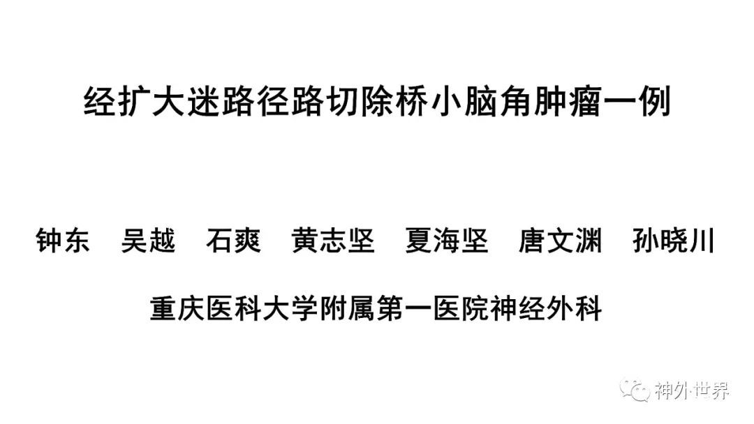 今天为大家分享的是,由重庆医科大学附属第一医院神经外科钟东教授团队带来的经扩大迷路径路切除桥小脑角肿瘤一例,欢迎阅读、分享!