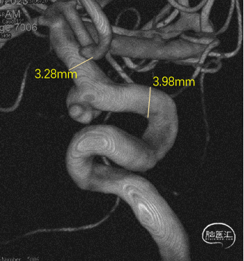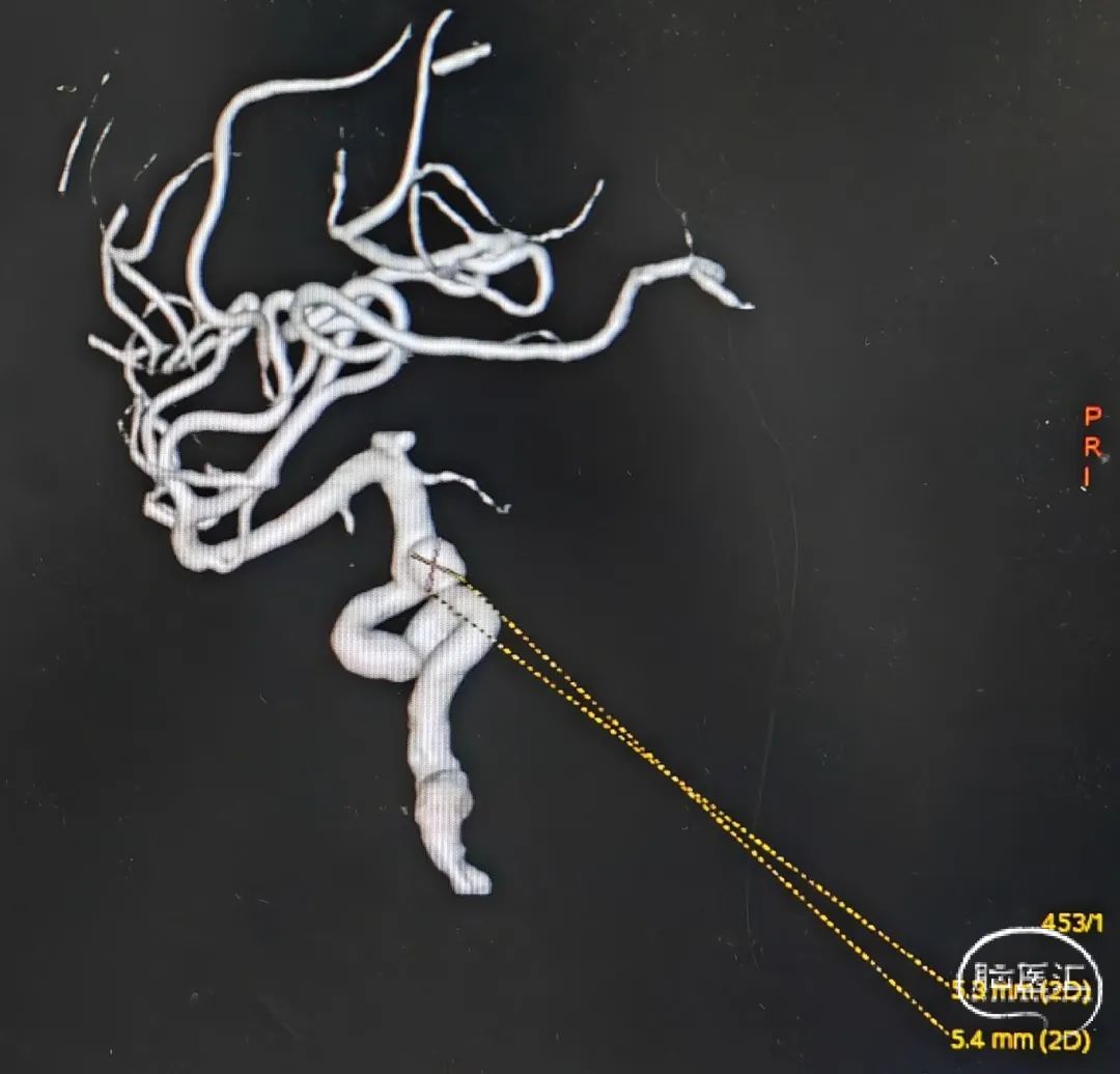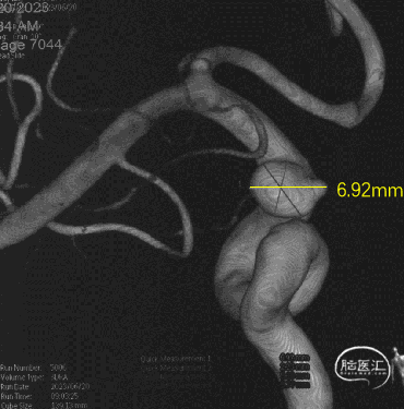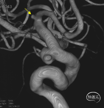 现病史:患者因头痛17天,外院行头颅CTA提示:左侧颈内动脉交通段动脉瘤,动脉瘤大小约5.3×5.4mm,形态不规则,左侧大脑前动脉A1段瘤样凸起。