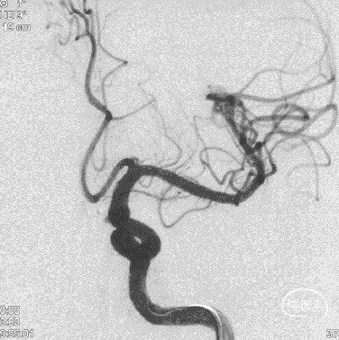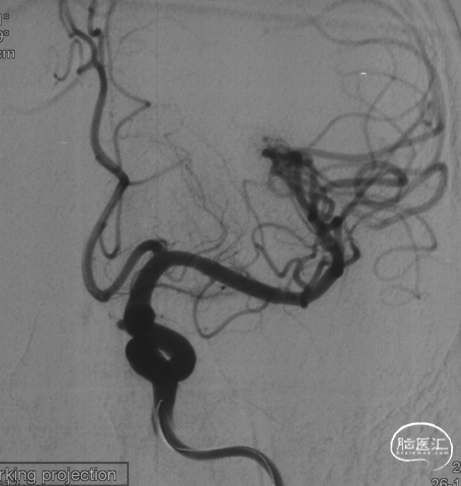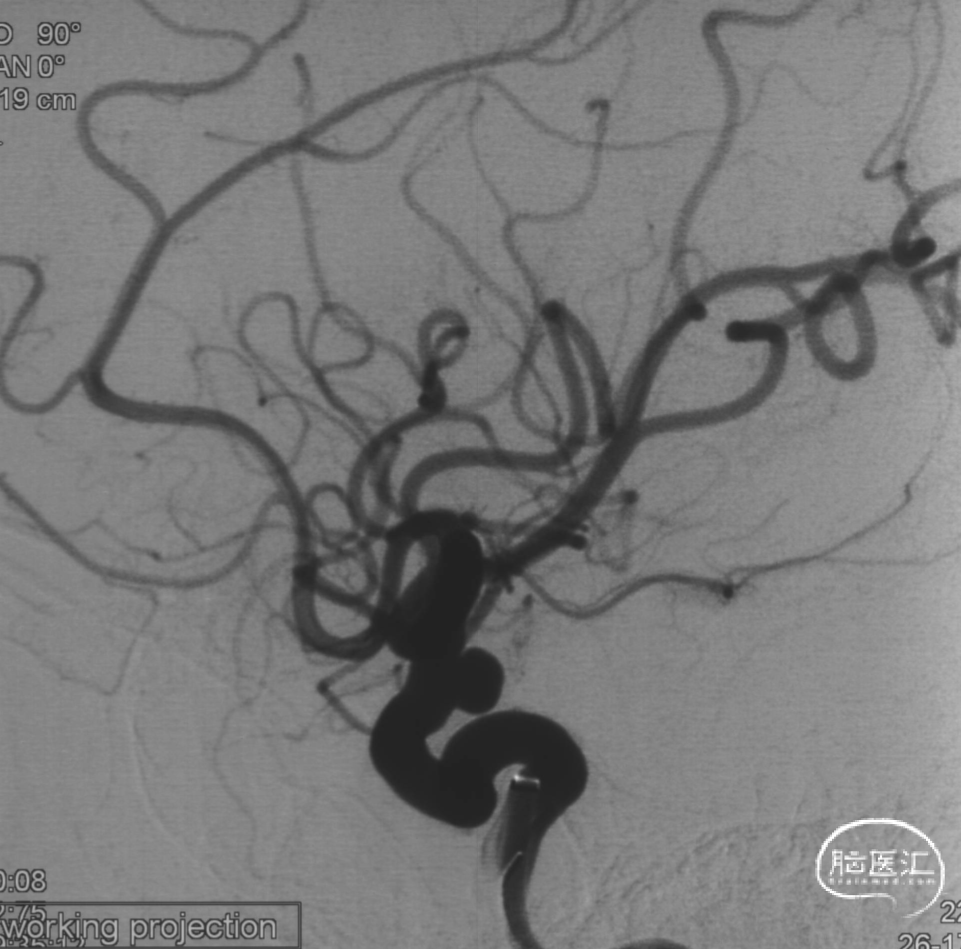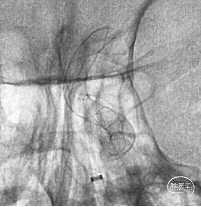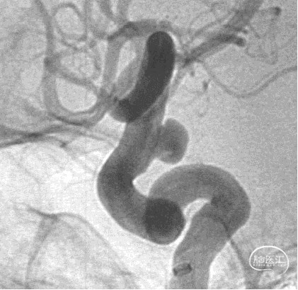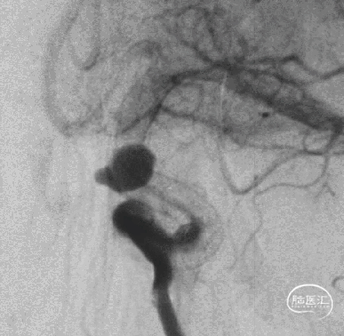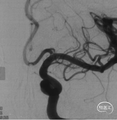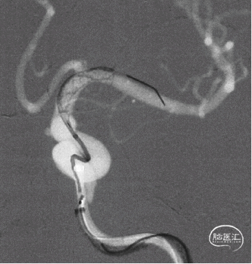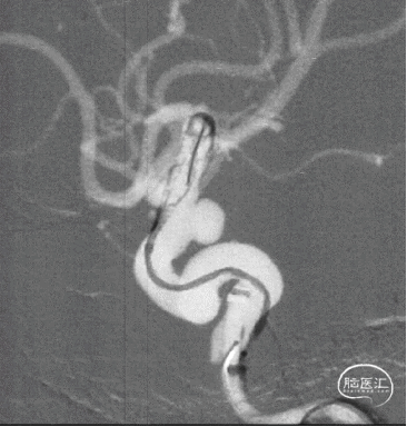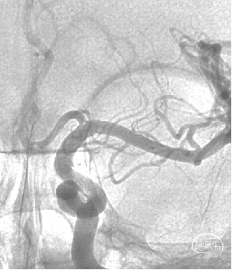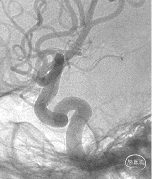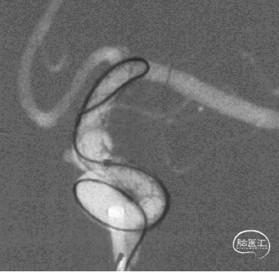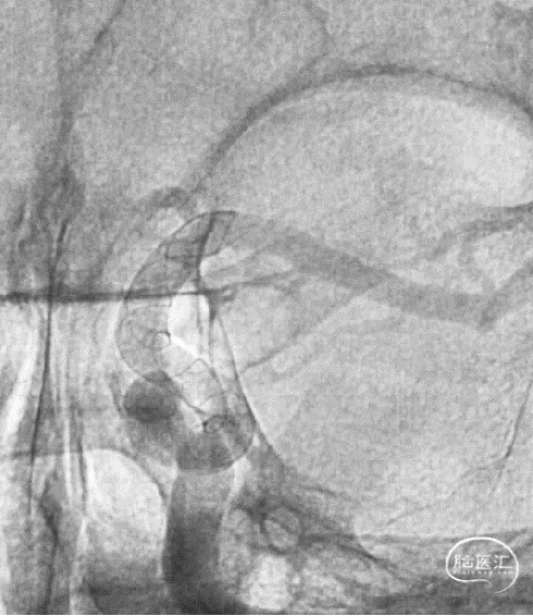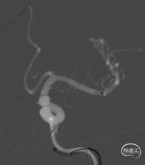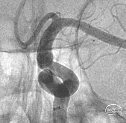 5、FD植入后,动脉瘤明显造影剂瘀滞,效果显著。
