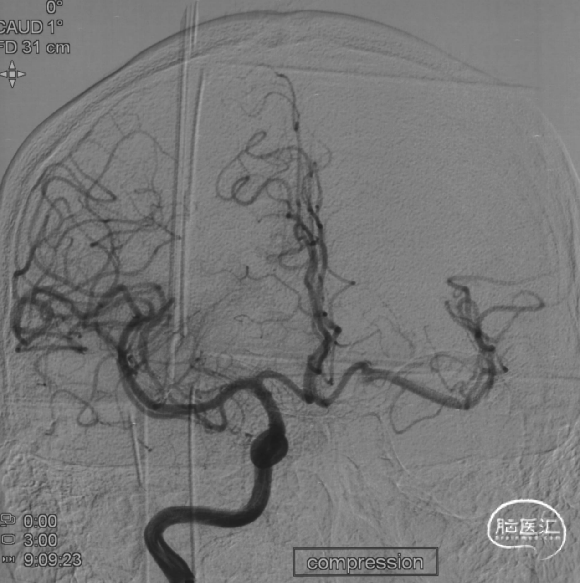 2、患者同侧大脑前动脉A1段有小泡突起,术中将FD盖住同侧A1,以此减少A1血流量,降低小泡进一步变大及破裂风险。