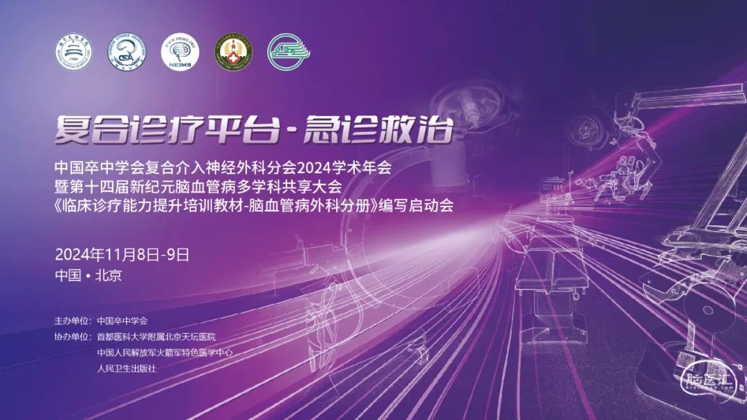 由中国卒中学会主办,首都医科大学附属北京天坛医院、中国人民解放军火箭军特色医学中心、人民卫生出版社协办的“中国卒中学会复合介入神经外科分会2024学术年会,暨第十四届新纪元脑血管病多学科共享大会、《临床诊疗能力提升培训教材-脑血管病外科分册》编写启动会、2024版《神经外科复合手术指南共识》专家咨询会”将于2024年11月8日至9日在中国北京举行。
