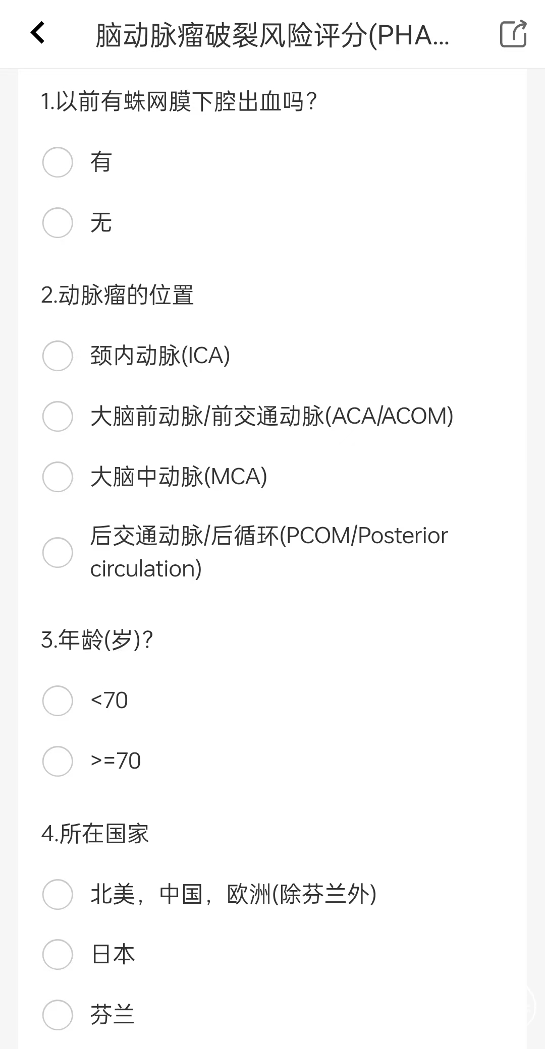 脑动脉瘤破裂风险评分(PHASES评分) - 临床评分小工具 - 脑医汇 (brainmed.com)