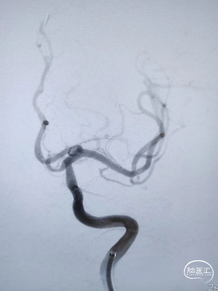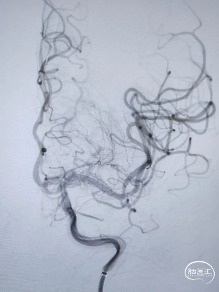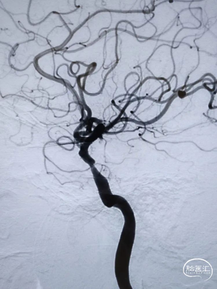 简要病史:左侧大脑半球散在点状梗死发病两周,强化药物治疗后病情稳定,恢复良好,拟进行全脑血管造影检查评估。