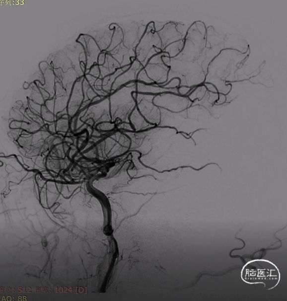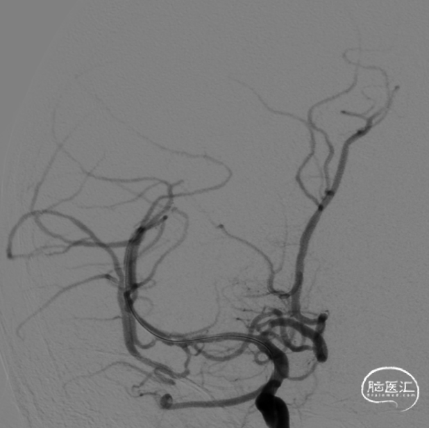 术前右侧颈内动脉造影示右侧副大脑中动脉