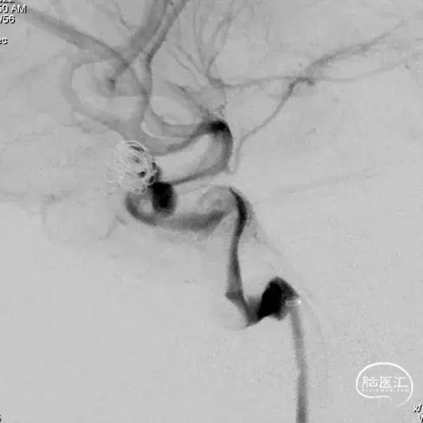 术后6个月造影随访提示动脉瘤完全愈合,载瘤动脉通畅。