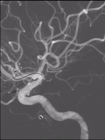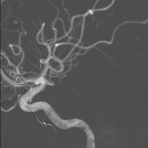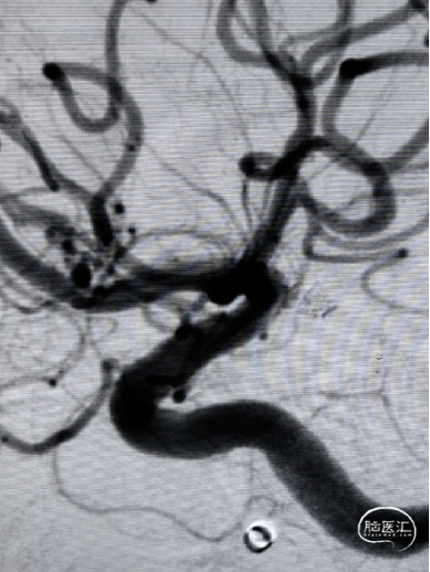 2.对于A1起始部动脉瘤的介入治疗,栓塞微导管从同侧颈内动脉入路,微导管塑形较困难,而且手术过程中微导管到位困难以及稳定性也差;栓塞微导管从对侧到位是一个好选择,但术前评估A1与动脉瘤关系非常重要。