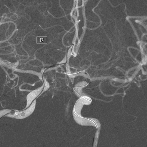 3.右侧颈内动脉颅内支撑导管,支架微导管。