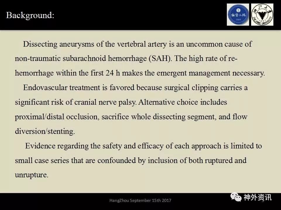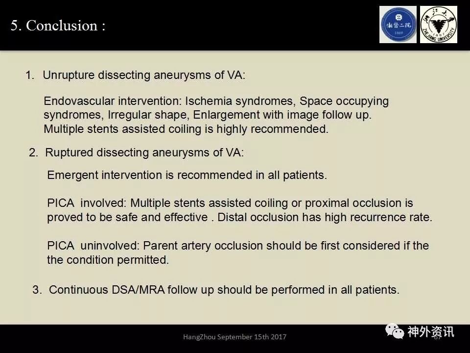 今天为大家分享的是“强生医疗CNV-神经介入专栏”第二十九期,由浙江大学附属第二医院神经介入病区副主任许璟教授带来的“椎动脉夹层动脉瘤治疗策略”精彩讲课视频及PPT,欢迎观看。文章仅代表作者个人观点,如有不同见解,欢迎同道斧正!