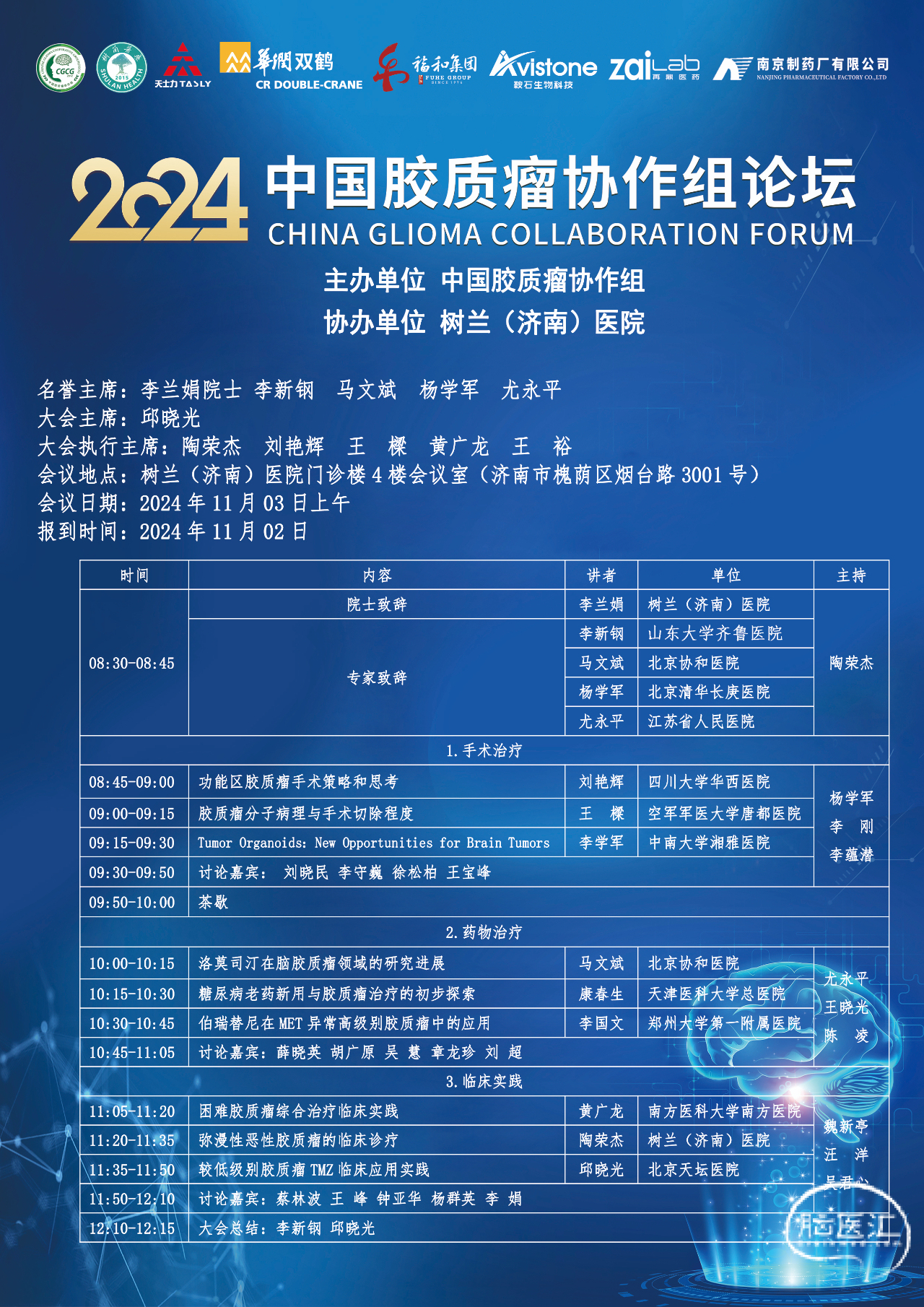 初冬的泉城,艳阳高照,诚挚邀请您参加2024年11月3日在济南召开的2024年《中国胶质瘤协作组》论坛,本次会议主题《多学科协作共赢》,大会将邀请国内著名胶质瘤领域专家,开展多种形式的深入交流,共同提高胶质瘤临床治疗水平。