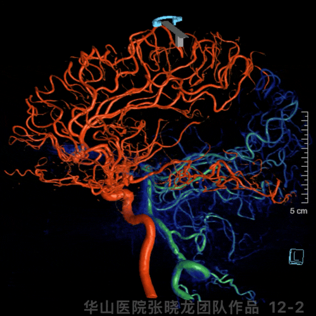 •由于同侧大脑中动脉上干闭塞,主要由同侧大脑前动脉软膜吻合代偿,所以若术中导致左侧大脑前动脉闭塞将会导致灾难性的后果。