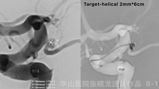 •患者高龄,A2/3段成角较急,支架辅助栓塞大脑前动脉血栓形成或闭塞风险相对较高,故首选单纯栓塞。