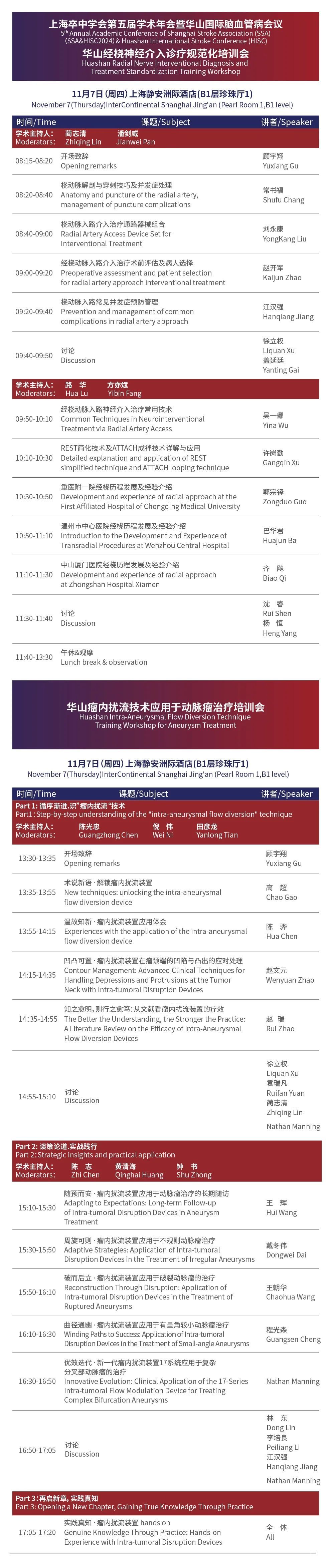在此诚挚的邀请您出席于2024年11月7日至9日在上海举办的“上海卒中学会第五届学术年会暨华山国际脑血管病会议(SSA&HISC2024)”(11月7日大会报到日,11月8日上海卒中学会第五届学术年会,11月8-9日华山国际脑血管病会议2024)。本次会议将深入贯彻落实《“健康中国2030”规划纲要》,围绕再灌注治疗、脑动脉瘤及血管畸形、颅内出血、卒中二级预防、精准诊断与规范五大主题,旨在推动脑血管领域的多方合作,促进精准诊疗、创新科技和学术成果的产出,最终造福临床实践和患者。这不仅是一次学术的盛宴,更是一次文化的交融与智慧的碰撞。