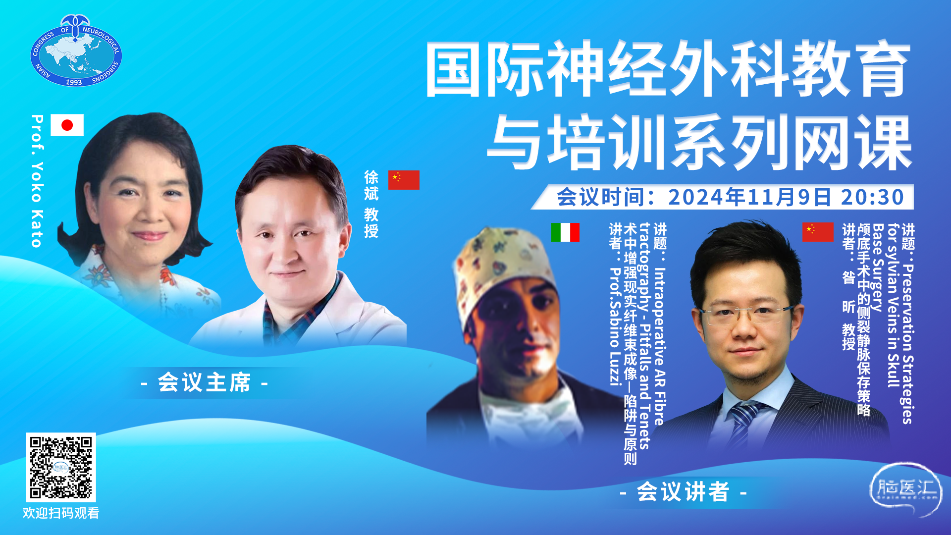 注:会议信息由复旦大学附属华山医院徐斌教授提供,脑医汇旗下神外资讯直播技术支持,欢迎观看!