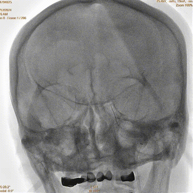 回退BGC球囊至颈总动脉,正侧位造影,达到TICI3级,远端血流稳定。