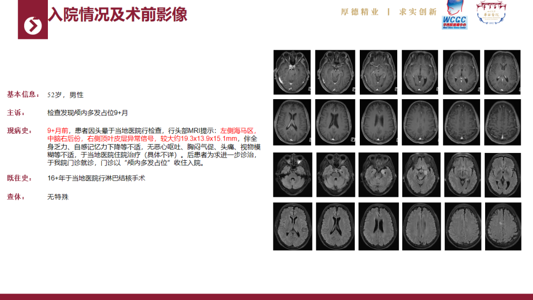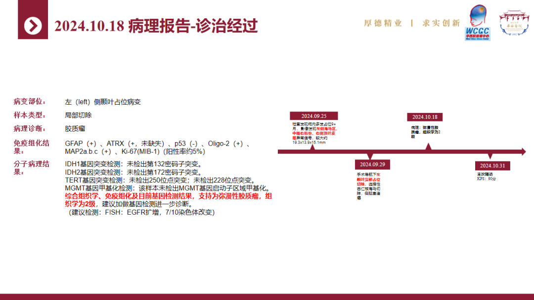 华西医院神经外科:补充就诊过程,该病例是发现占位后9月来进行手术治疗,对比术腔9月核磁未见明显增长,按照生长速度是否考虑为低级别。