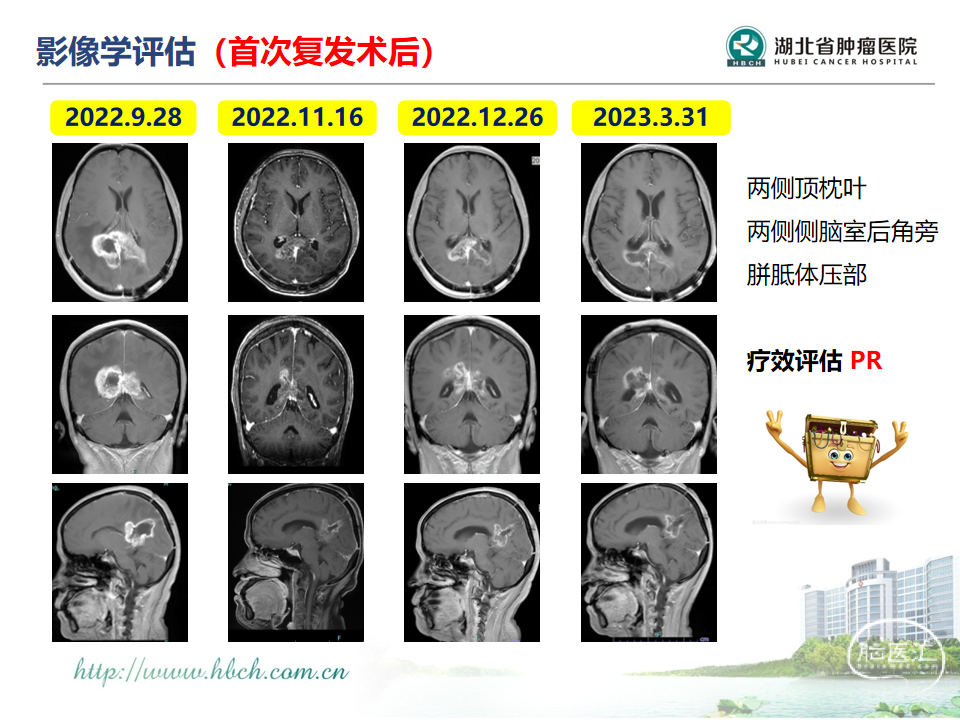 华西医院神经外科:该病例为多中心胶质瘤,在发现新发小病灶时需要判别水肿带肿瘤细胞,在高级别胶质瘤的治疗中不仅要重视增强,也要重视非强化的水肿带,需要肿瘤科对看不到的肿瘤细胞进行治疗。